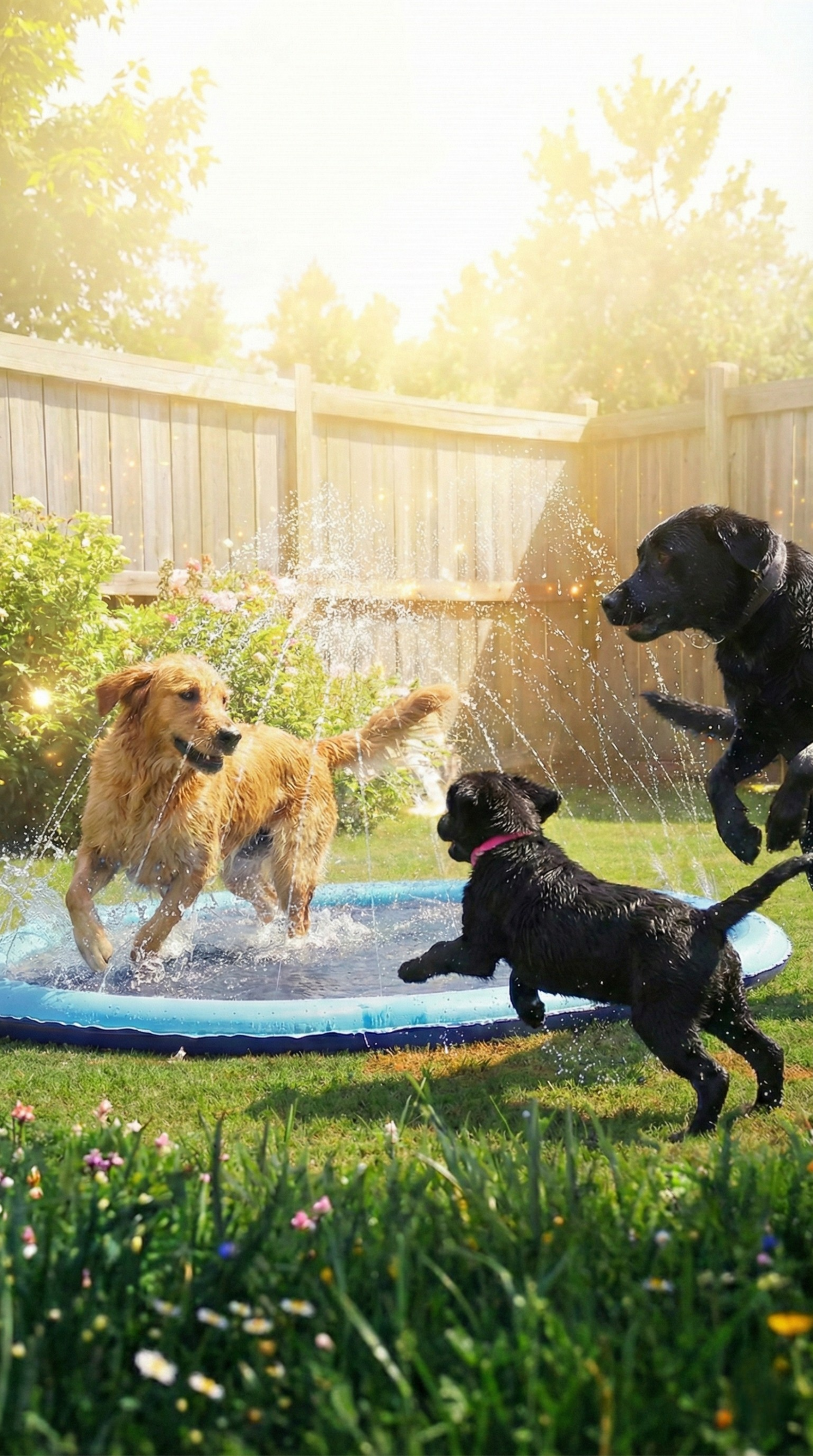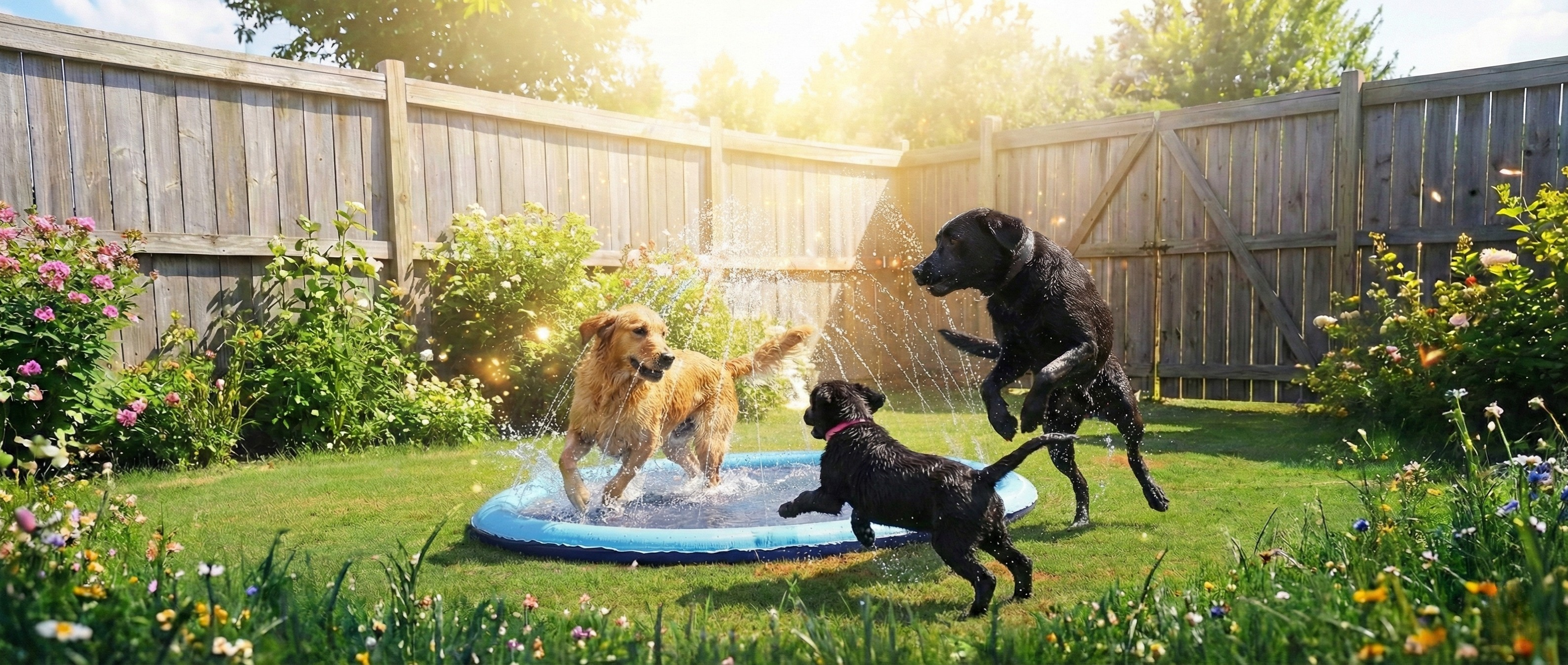 An inflatable splash pool with a built-in water fountain that turns your backyard into the ultimate dog water park. Perfect for play, cooling, and endless summer fun.
